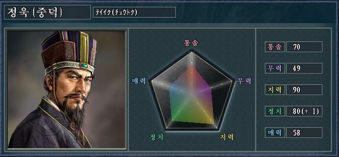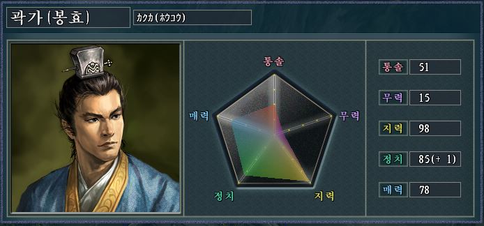 그럼에도 지력과 정치가 매우 높아 내정머신으로서 활약해준다.